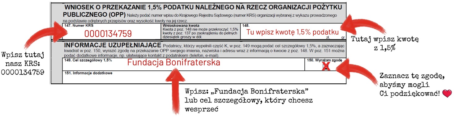 Przekaż 1,5% podatku na rzecz Fundacji Bonifraterskiej. Dziękujemy!